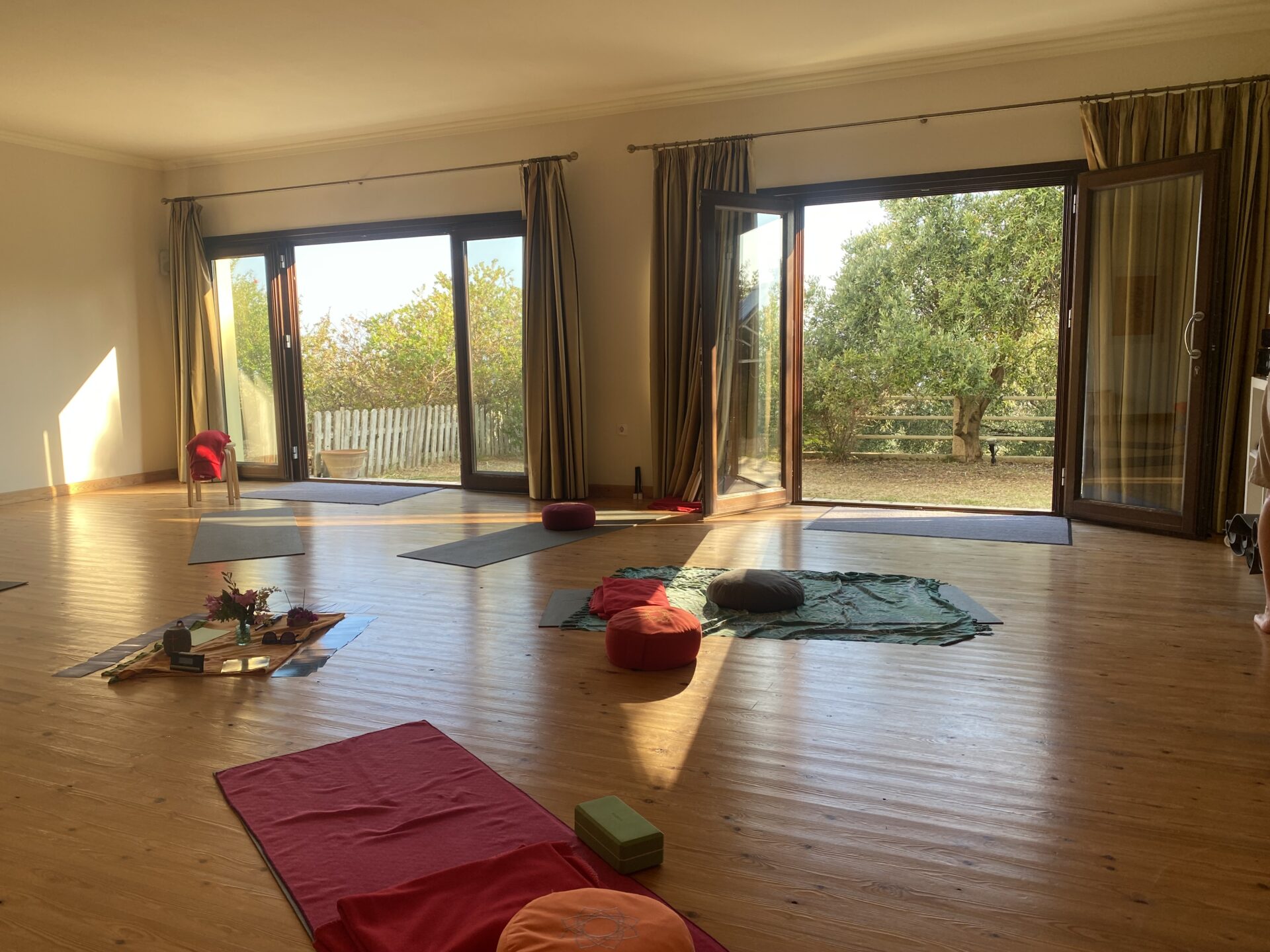 - Seminarraum (ca. 65 qm) mit Holzboden – Platz für max. 15-20 Teilnehmer ● ausgestattet mit Musikanlage, Matten, Kissen, Decken etc
